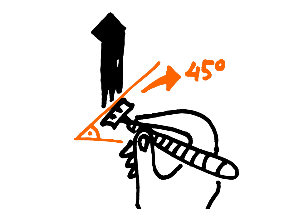 Bleibe bei dem 45°-Winkel und verändere beim Schreiben die Position nicht: