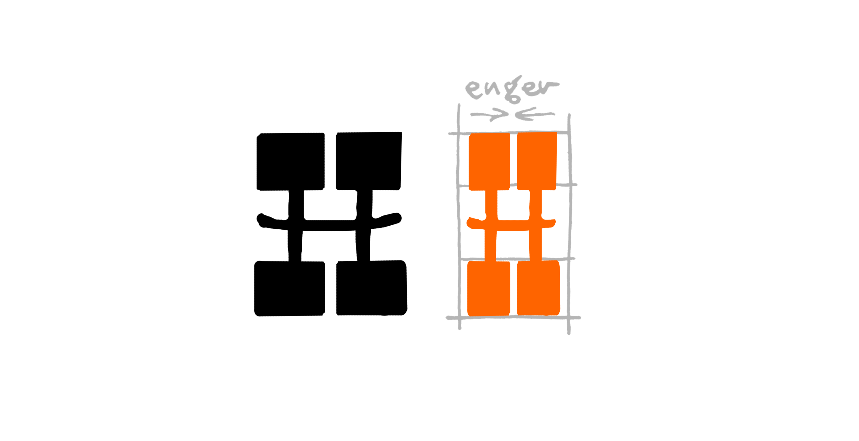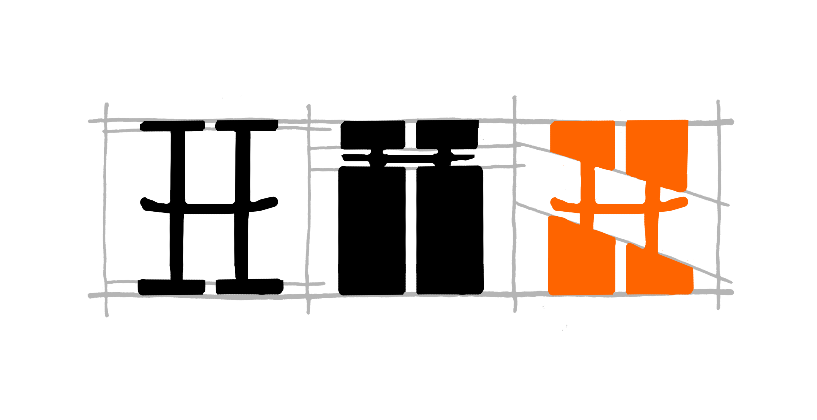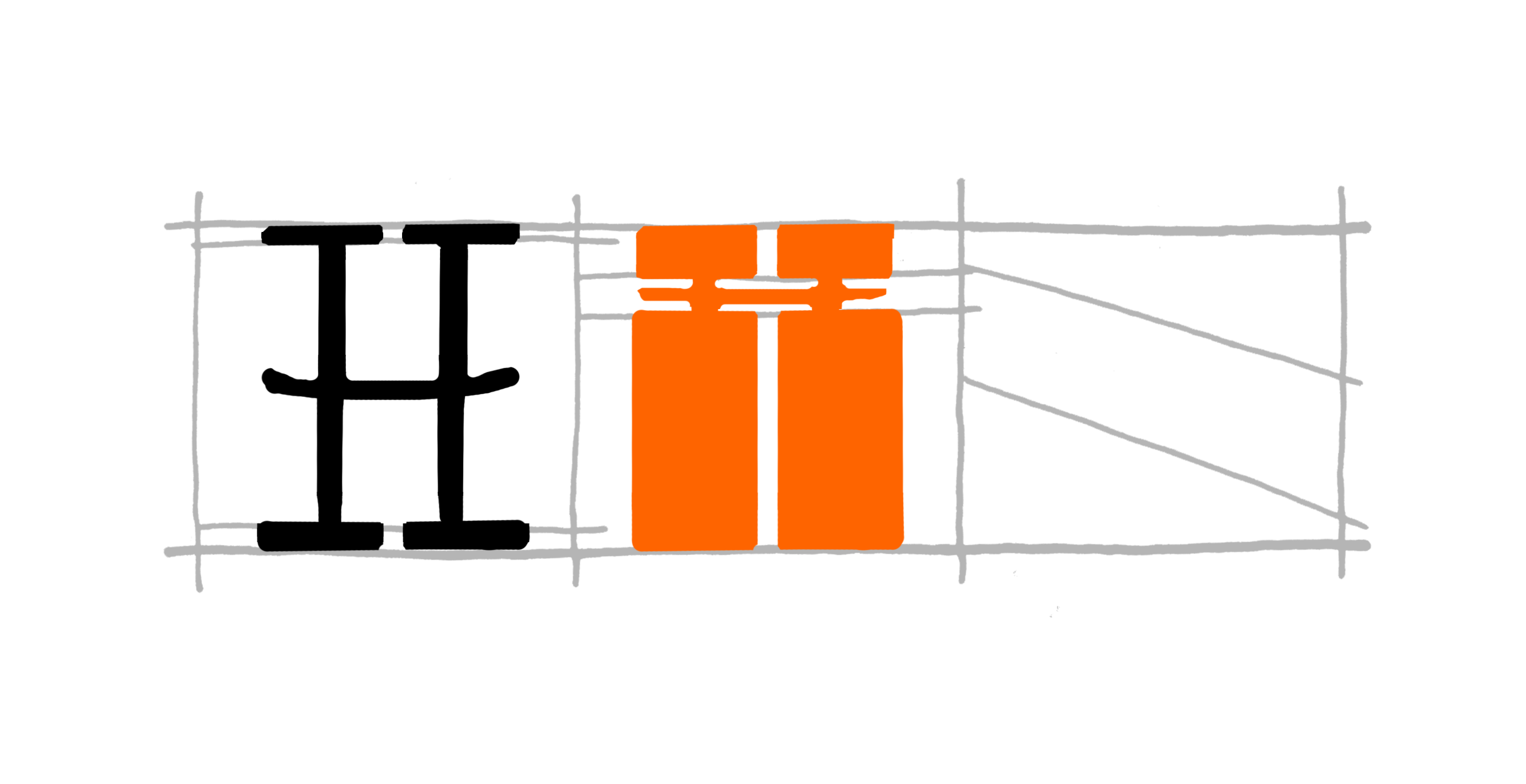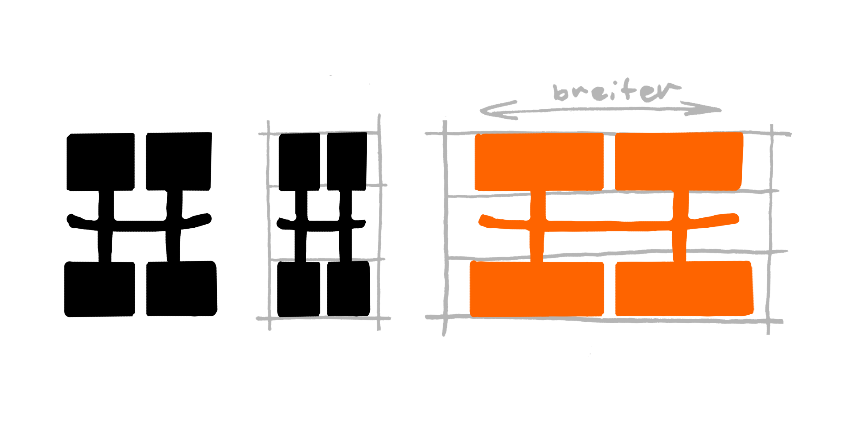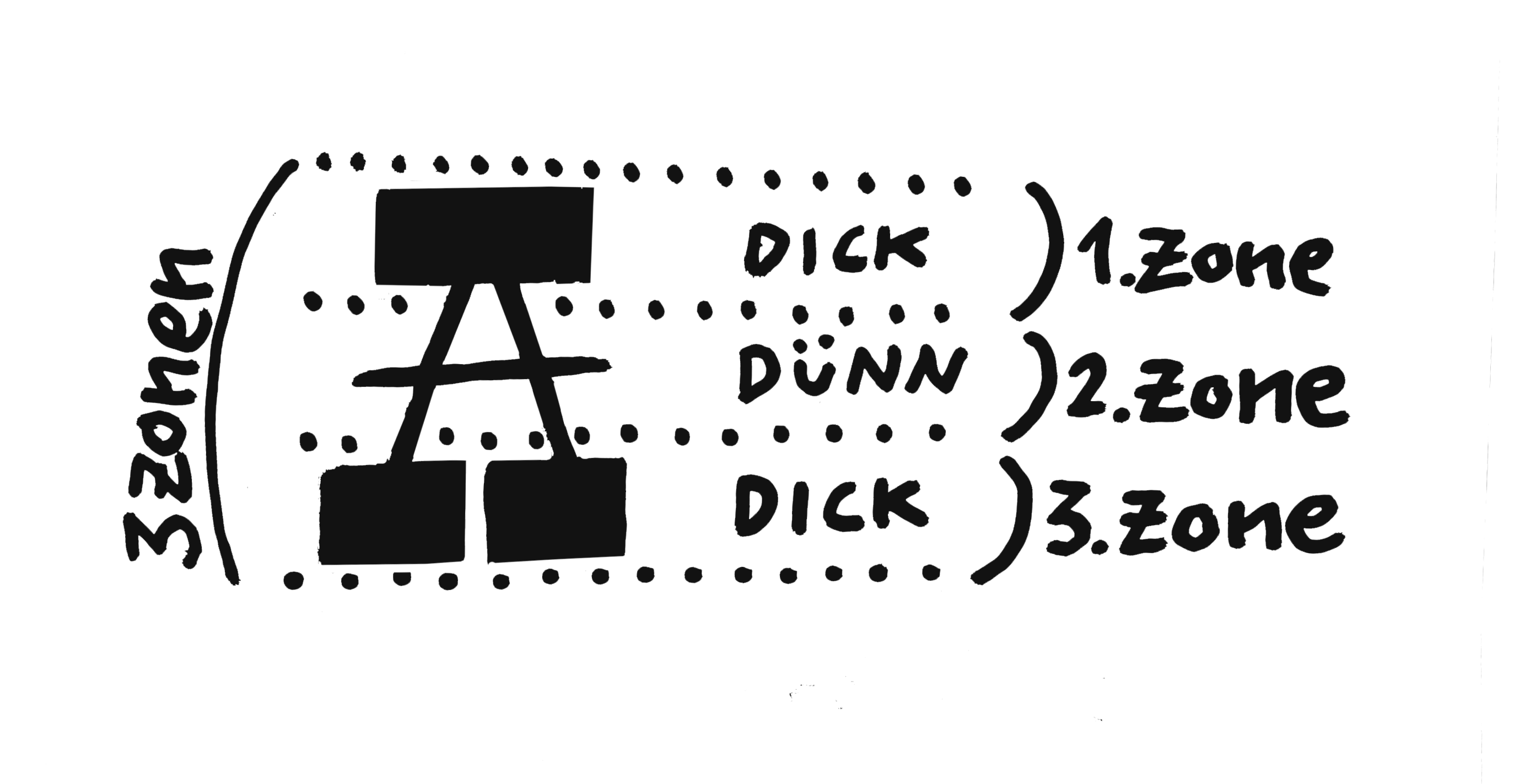 In der ersten und dritten Zone sind die Serifen des Buchstabens zu sehen. Die sind nicht so wichtig für uns um einen Buchstaben erkennen zu können. Der wichtigere Teil spielt sich in diesem Beispiel in der Mitte des Buchstabens ab (Ausnahmen bestätigen die Regel). Heute arbeitest du mit den Zonen und wirst sehen was für wirkungsvolle Buchstaben entstehen wenn du einfach nur mit dem Größenverhältnis der Zonen herumspielst.