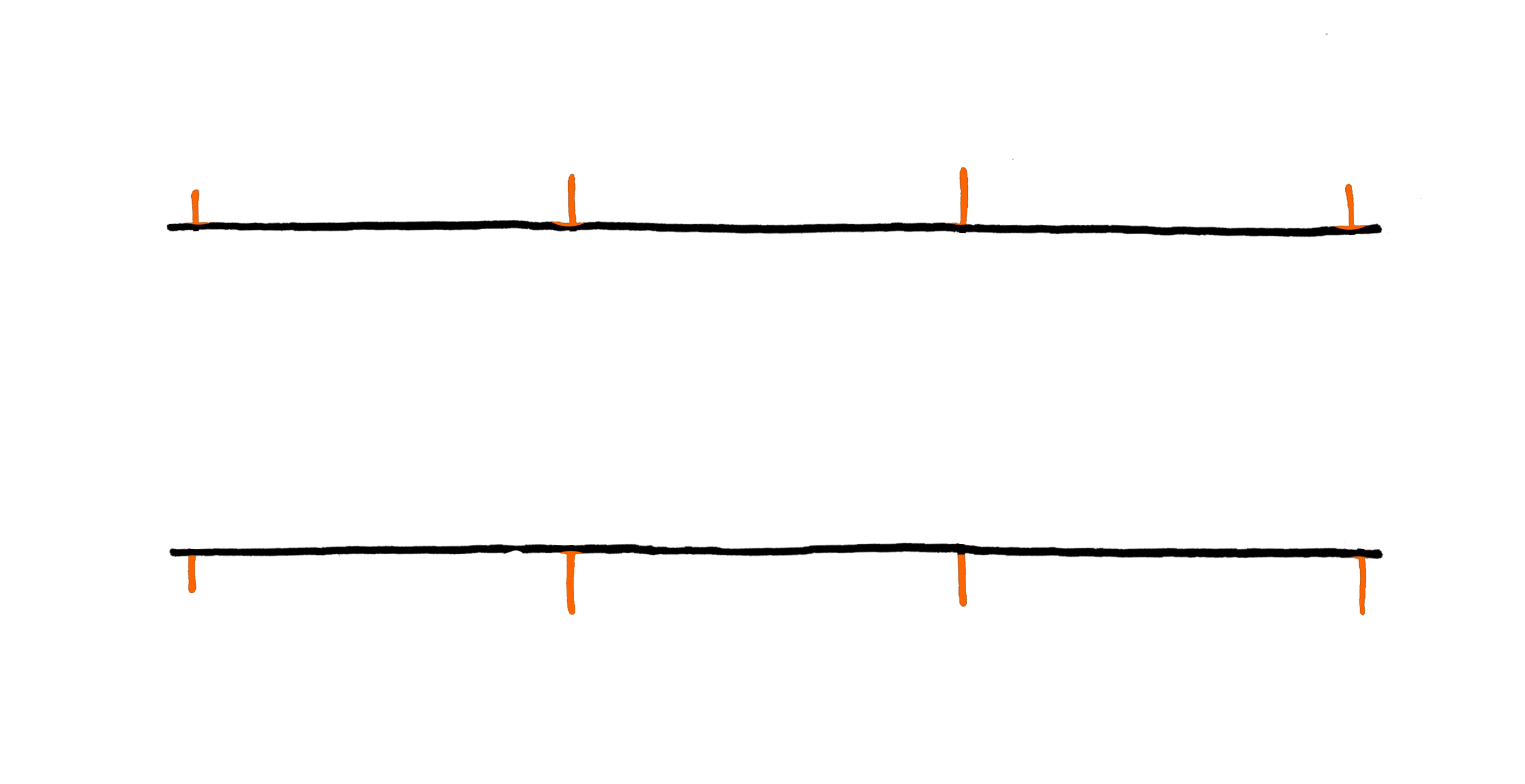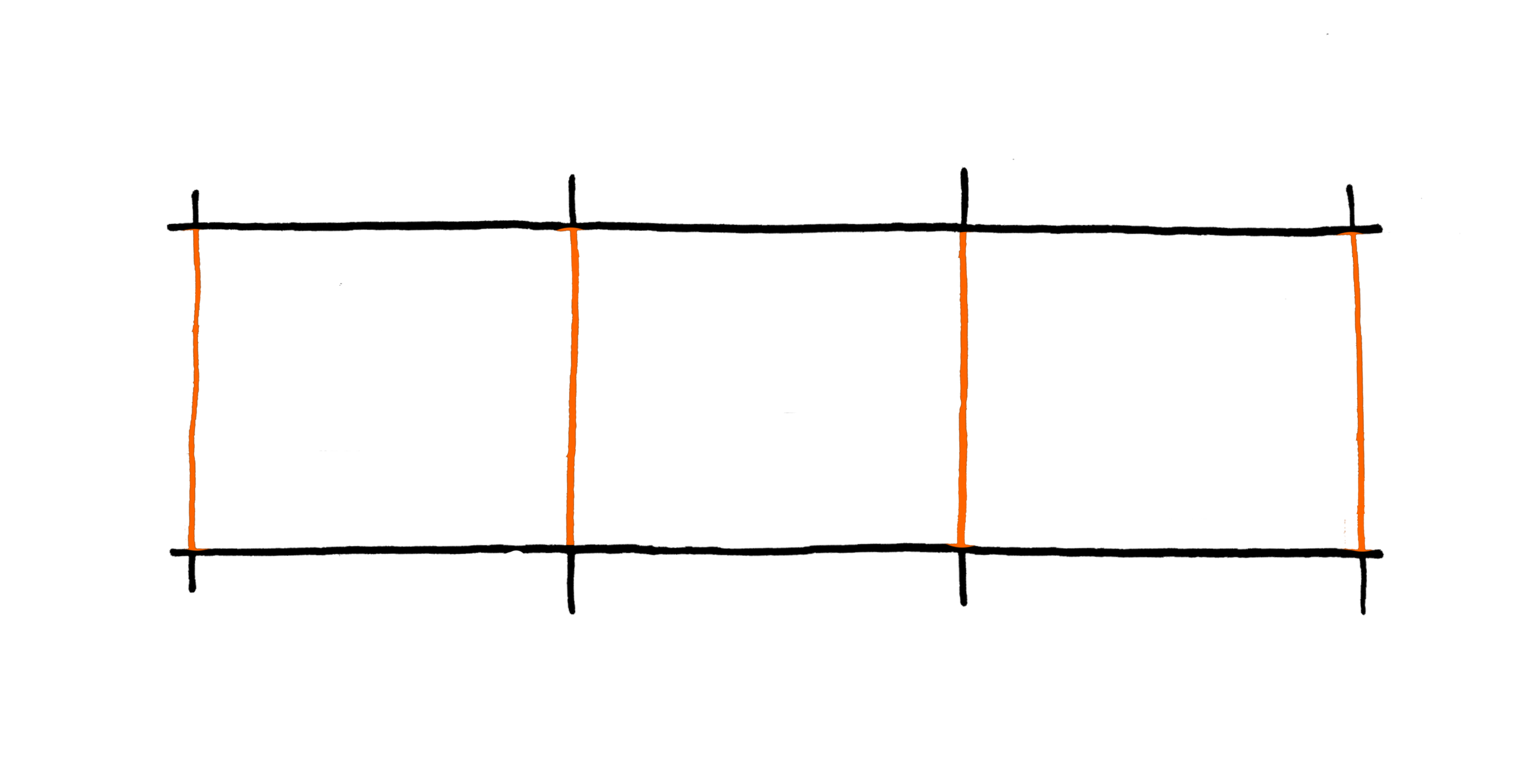 Unterteile deine Striche im gleichmäßigen Abstand. Es können 7cm sein.