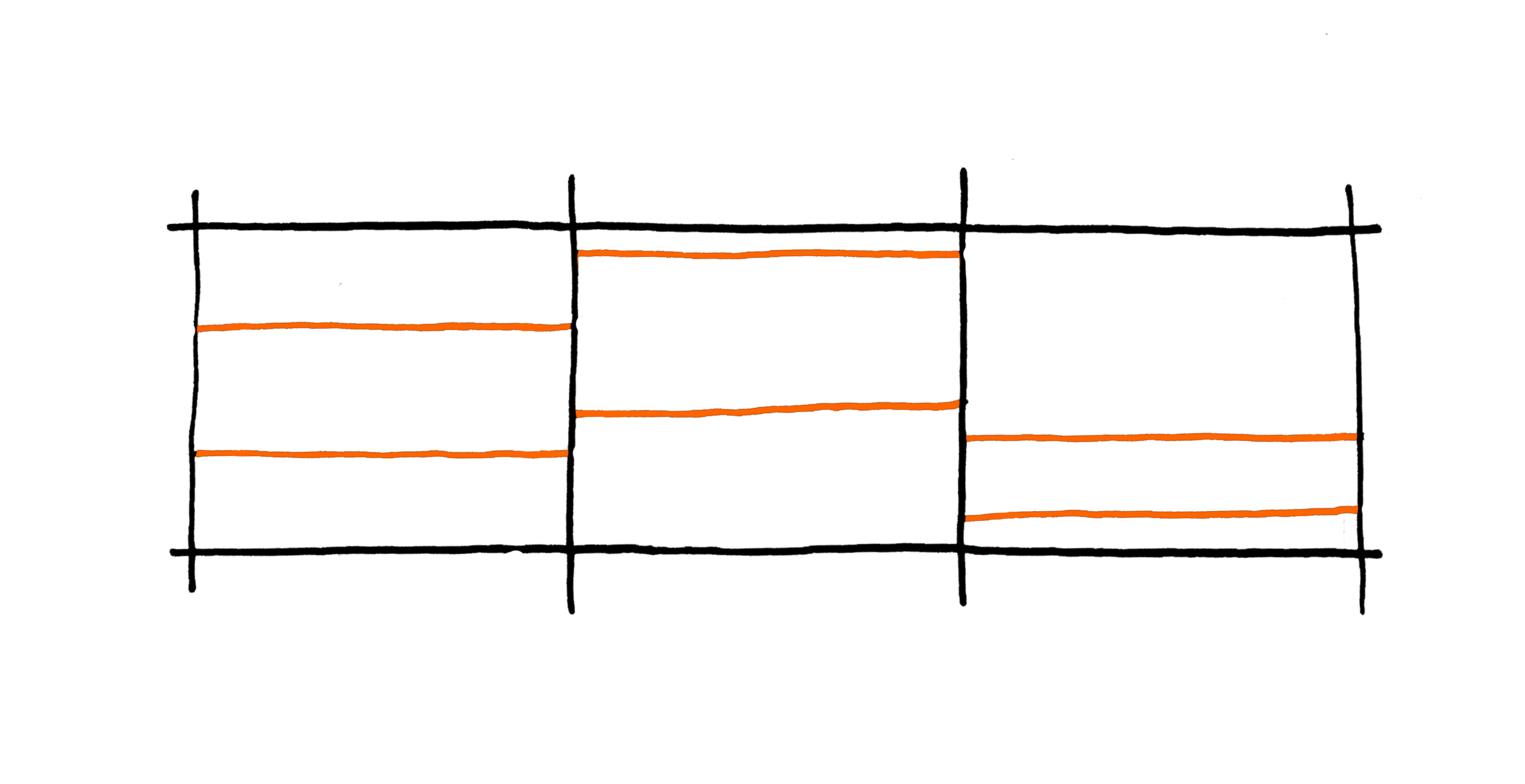 In jedes dieser gleichgroßen Kästen kommt der selbe Buchstabe. Nur die Höhe der Zonen, wie oben kurz angerissen, wirst du jetzt variieren.