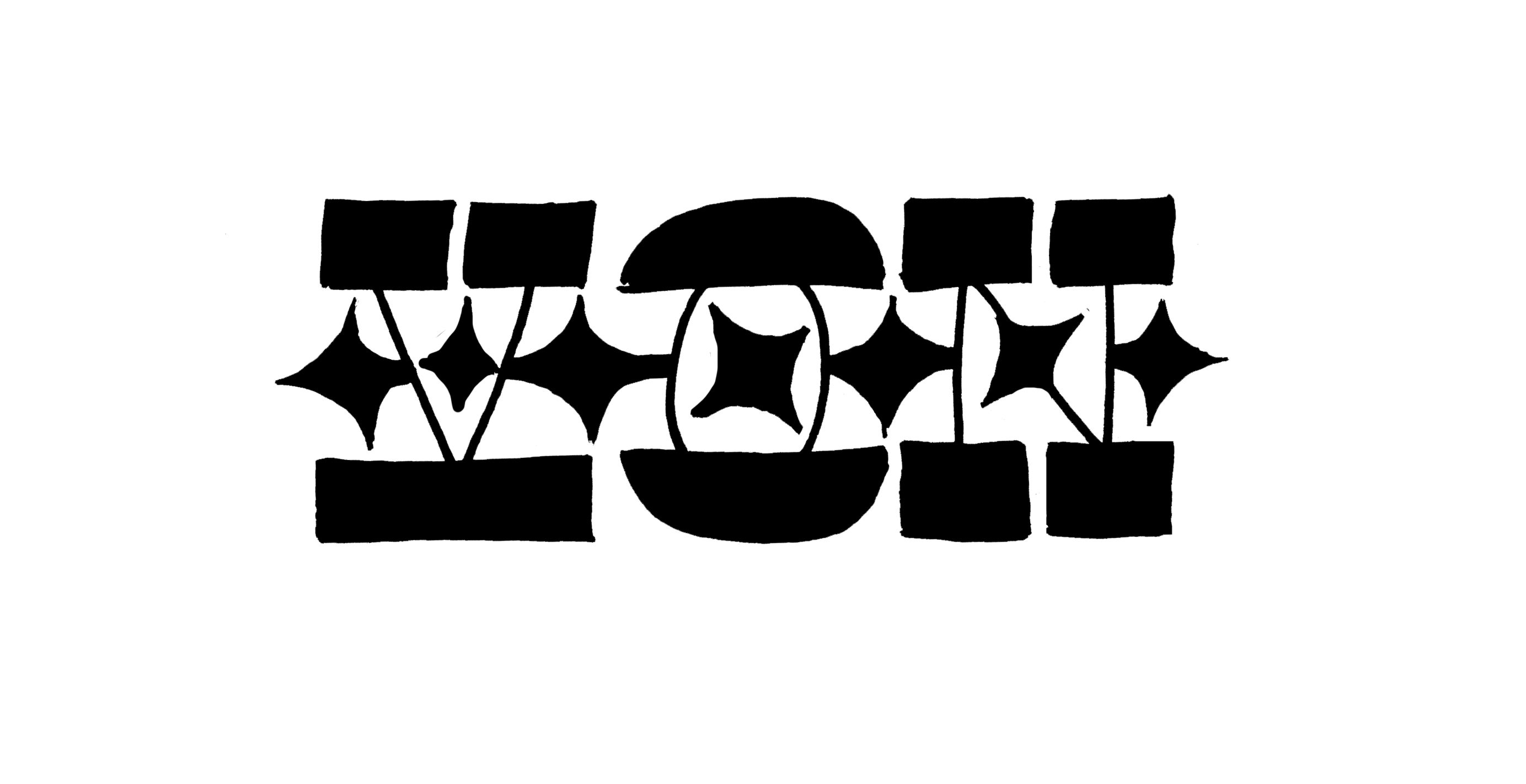 Du hast jetzt ein Wort, was in der mittleren Zone viel freie Fläche hat. Die wollen wir gleichmäßig füllen. Mit einfachen grafischen Elementen. Wie ich oben gezeigt habe, geht es hier auch darum die Flächen zwischen den dünnen Strichen in der Mittelzone gleichmäßig zu befüllen. Idee eins: Rechtecke.