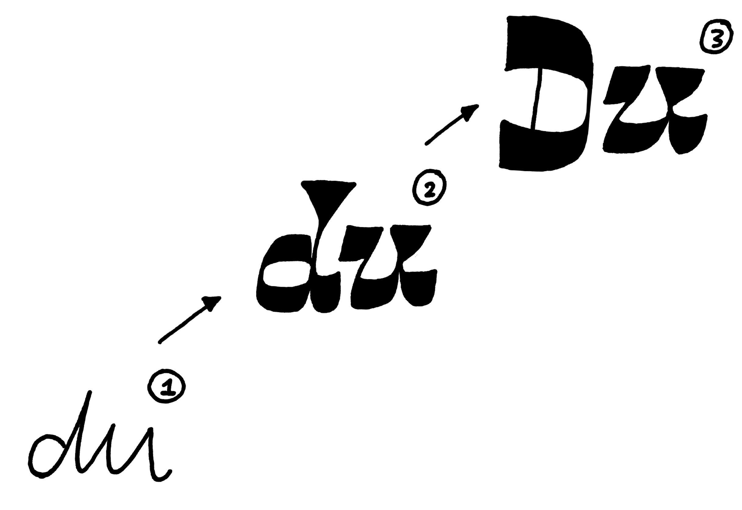 Und als letztes, anstelle von der kursiven Variante, machst du einen konstruierten Schriftzug. meiner sieht so aus (aufrecht-stehend und unverbunden):